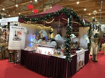 Liebevolle dekoriere ich meine Stände zu Weihnachten.